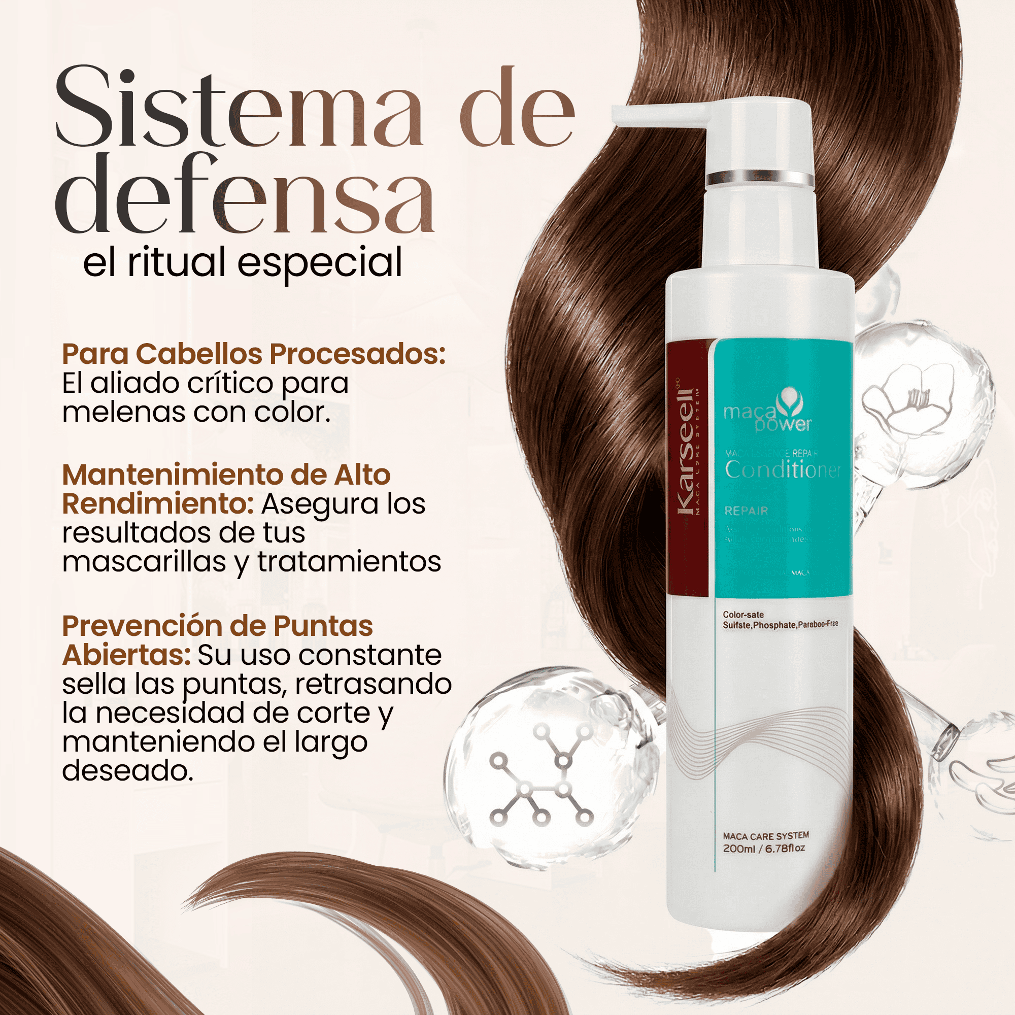 Devuelve la vitalidad a tu melena con el Acondicionador Reparador Karseell. Formulado con el exclusivo Maca Care System, este acondicionador actúa instantáneamente sellando la cutícula capilar para retener la humedad y los nutrientes esenciales. Es la solución ideal para quienes buscan reparar el daño diario causado por el cepillado, el sol o el calor, dejando el cabello con un tacto de seda y un brillo radiante.