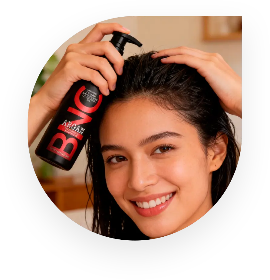 El aceite de argán aporta una luminosidad natural y deja el cabello manejable para el siguiente paso.