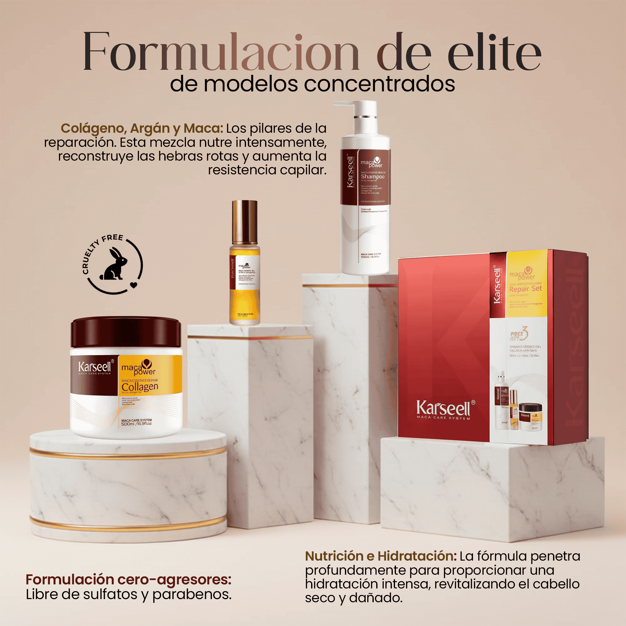 Consigue resultados de salón de belleza sin salir de casa con el Pack Trío Maca Care System. Este conjunto reúne los tres pilares fundamentales para restaurar el cabello dañado, seco o sin vida. Al usar la línea completa, los activos de la maca y el colágeno trabajan en cadena para limpiar, reparar profundamente y sellar la hidratación. Como Distribuidor Oficial, garantizamos que cada producto de este pack es 100% original y de máxima pureza.